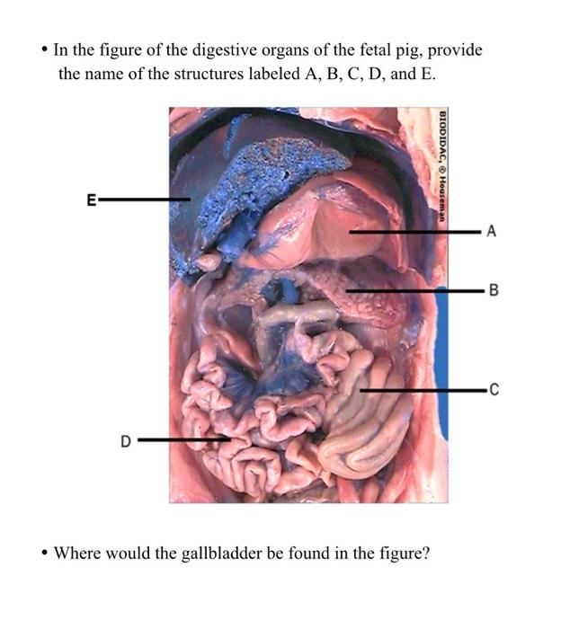 From the laryngopharynx air passes through the glottis to the trachea. Hard palate soft palate glottis epiglottis tongue. Fetal Pig Dissection Part 3- Digestive System - YouTube. Bile is produced which helps emulsify fats Stomach. Curve of the small intestine where conjoins stomach. Internal anatomy of fetal pig. Its anatomy and physiology are similar to that of humans. Digestive System DIGESTIVE SYSTEM Digestive organs in the abdomen Identify the following structures using the illustration for reference. Successfully complete dissection of the fetal pig.