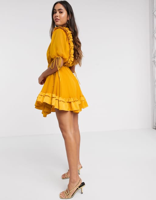 Plus Size Tandi Ruffle Satin Dress - Mustard. Little Mistress ruffle wrap midaxi satin dress in emerald at ASOS.