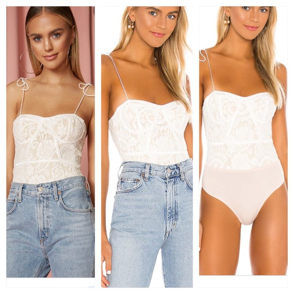 Stasia Lace Bodysuit in White Nude size medium new with tags. Superdown Stasia Lace Bodysuit in White. Similar ones also available.